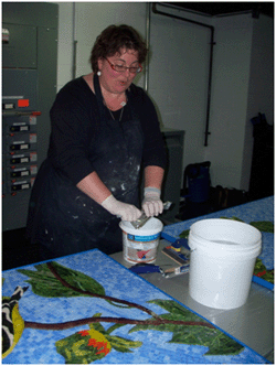 Products donated to the convention were LATICRETE® SpectraLOCK® PRO Premium Grout and LATICRETE Glass Tile Adhesive Mortar. Both of these installation materials, which have been formulated for high-performance when installing glass tiles, can be of tremendous benefit to mosaic artists.