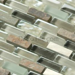 For a more distinctive design, Deko Tile offers the 3/8 x Multiple Length Mosaic. Once again, glass, quartzite and aluminum are used as the primary components for the chips but this time those chips are presented in thin multiple lengths. The result is nothing less than spectacular. As with most of the other selections, this mosaic pattern is offered in 12 x 12 sheets which are easy to cut to fit and install. This pattern is also available as a Verbena Blend which utilizes serene green shades of glass and slate patterned with brushed silver aluminum.