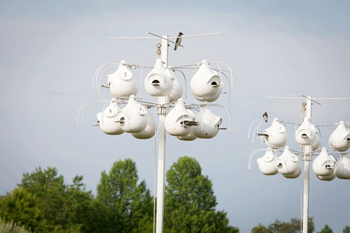 SALEM, NJ - August 23, 2012 – In the mid-1980’s, Mannington began an effort to attract the insect-eating birds called Purple Martins to its Salem, NJ site as a pesticide-free way to reduce the insect population. Not only were mosquitoes and other insects a nuisance to associates, but they were attracted to some of the product components used in the manufacturing of flooring and could become lodged in the wet processes coming off the production lines – resulting in less than “first quality” product.