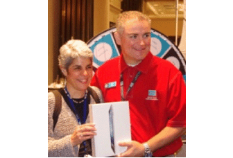During the conference, one of the most highly entertaining and closely followed events was the LATICRETE "Spin to Win" Prize Wheel. Any attendee could spin for a chance to win one of several prizes instantly. For the 10 attendees who landed on a new Apple® iPad, their name was individually mounted on the Prize Wheel for a final round spin where one lucky winner was chosen. Lesley Goddin, Editor of Tile Letter magazine, the official publication of the