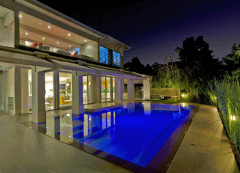 The seamless transition from pool to coping was created by Reed’s precise preparation and installation of the two opposing materials. Reed and Phillips clever use of their own custom designed inlet floor fittings helped create a smooth-looking, uninterrupted surface transfer from the tranquil pool to the beautiful porcelain tile coping perimeter overflow slot-edge installed with perfection by Reed. The Cahn homes new pool and backyard terrace setting emphasizes the importance of hiring only proven professionals. When it does happens, this team showed that even certain failure can be rescued and flipped into a spectacular pool and electric backyard setting.