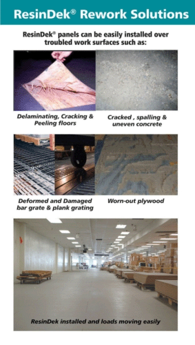 ResinDek® is an engineered wood panel that has been designed for the material handling marketplace, which means it performs better than plywood, concrete, plank grating or bar grating because it has been engineered for these fast moving logistical environments with heavy traffic and loads.