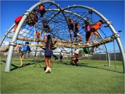 EBCBDO, a nonprofit focusing on improving the quality of life for Ewa Beach residents, applied for and was awarded a $90,000 grant from the City of Honolulu to rebuild the playground, designated unsafe and shut down by the city in 2011. EBCBDO turned to two innovative playground partners: Kompan (playground equipment) and EasyTurf (surfacing) to build the one-of-a-kind “Explorer Dome” playground on the island of Oahu.