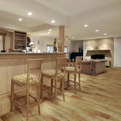Cork flooring is soft, resilient, renewable and sustainable. It is actually made from the bark of the tree, therefore the tree doesn't have to be cut down and the bark will grow back within three years’ time. Naturally waterproof, insulating, sound-absorbing and shock-absorbing, it resists mold and mildew. The floors are also hypo-allergenic, so they won’t attract dust; are fire-resistant; and can even serve as a natural insect repellant.
