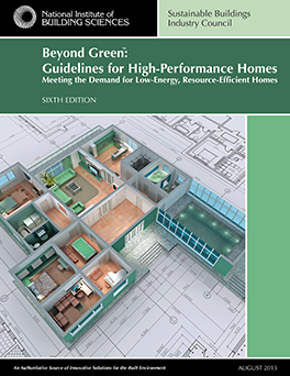 Today, the National Institute of Building Sciences Sustainable Buildings Industry Council (SBIC) released Beyond Green™: Guidelines for High-Performance Homes—Meeting the Demand for Low-Energy, Resource-Efficient Homes. This new publication goes beyond green and instead uses a “whole building” approach to constructing homes.