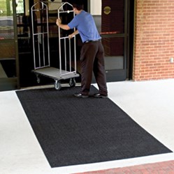 These new mats feature green-friendly rubber backing using 20% post consumer recycled car tire content. They are offered with smooth or cleated backings, and the premium rubber will not crack or curl. With drainable borders and solution-dyed nylon that will not fade in sunlight, they are intended for outdoor applications for commercial buildings.