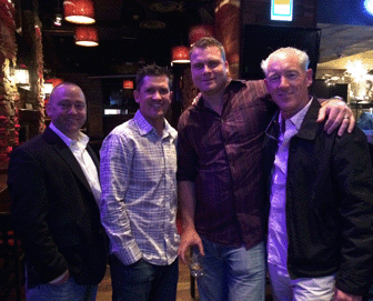 Pictured above at the minus5° ICE BAR (left to right): Doug Johnston, owner of StoneCrest Pools in Keller, TX, Dave Penton, CEO and founder of Fluid Dynamics Pool and Spa in Fullerton, CA, Gerard Meyers, Laticrete Sales Rep, and Jimmy Reed, President of Rock Solid Tile, Inc. in Los Angeles, CA.