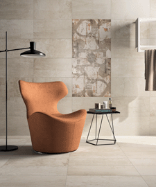 The result of Ariana's exploration of the world of natural stone, FUTURA is inspired by Ceppo di Grè, a distinctive sedimentary rock quarried on the shores of Lake Iseo that is widely used in Lombard architecture. Unveiled at Cersaie 2013, the coloured-body porcelain tile collection reinvents this material's sober and elegant appeal, rendering it in three different colours inspired by the natural variations of the stone, which is traditionally used in outdoor spaces and is therefore exposed to the elements.