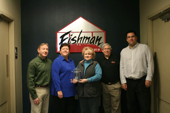*Photo Caption: Members of the Fishman Flooring Solutions team celebrate the firm's Distributor of the Year Award for 2014 presented by the Floor Covering Distributor Alliance. Left to right: Jon Karp, Mary Henritz, Sharon Eldridge, Len Goldheim and David Ciletti.