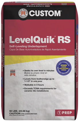 SEAL BEACH, Calif. – Feb. 4, 2015 – In an improvement to its flagship self-leveling underlayment products for use under tile, Custom® Building Products (www.custombuildingproducts.com/), the leading provider of tile and stone installation systems, announces an extensive upgrade to a more robust formula for its LevelQuik® Self-Leveling Underlayments. This includes both LevelQuik RS, for rapid setting applications and LevelQuik ES, with extended setting properties.
