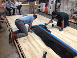 Attendees worked directly with Allan Nery from Rubio Monocoat to apply the designer European finish - view video footage. Contractors had a chance to see first-hand how the all-natural penetrating oil protects and colors wood in a single coat, and cures within 48 hours.