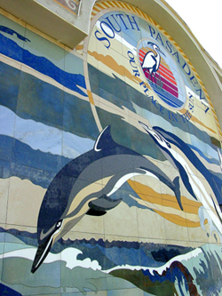 The entrance to South Pasadena, FL is clearly a work of public art. The mural, designed and constructed by Creative Edge of Fairfield, Iowa, measures 25' x 18' and is two-sided, with the same design and waterjet-cut work on both sides.
