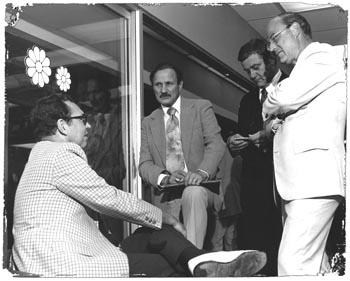 This photo was taken in the E.T. Barwick Mills showroom during the Atlanta summer market in 1978. It seems this foursome was engaged in serious conversation, but they were merely trying to decide where to have dinner—an important topic during markets. Shown, from left, are: John Chandler of the Vol T. Blacknall Co, a Barwick distributor; Al Wahnon, editor; Jack Love, vice president of Barwick, and Howard Reed, publisher. That was 28 years ago and Chandler, Love and Reed have since retired.