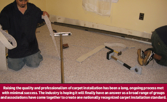 HICKSVILLE, N.Y.—Installing carpet, for whatever reason, has never been able to gain the type of recognition garnered by other home improvement and building industry trades, such as electricians, plumbers, roofers, even painters. That may soon change thanks to an industry-wide effort is now under way to create a national carpet installation standard through the American National Standards Institute (ANSI).